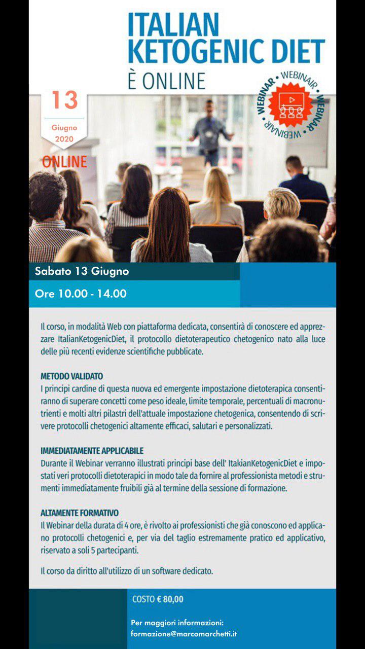 Il corso in modalità Web con piattaforma dedicata, consentirà di conoscere ed apprezzare ItalianKetogenicDiet, il protocollo dietoterapeutico chetogenico nato alla luce delle più recenti evidenze scientifiche pubblicate.