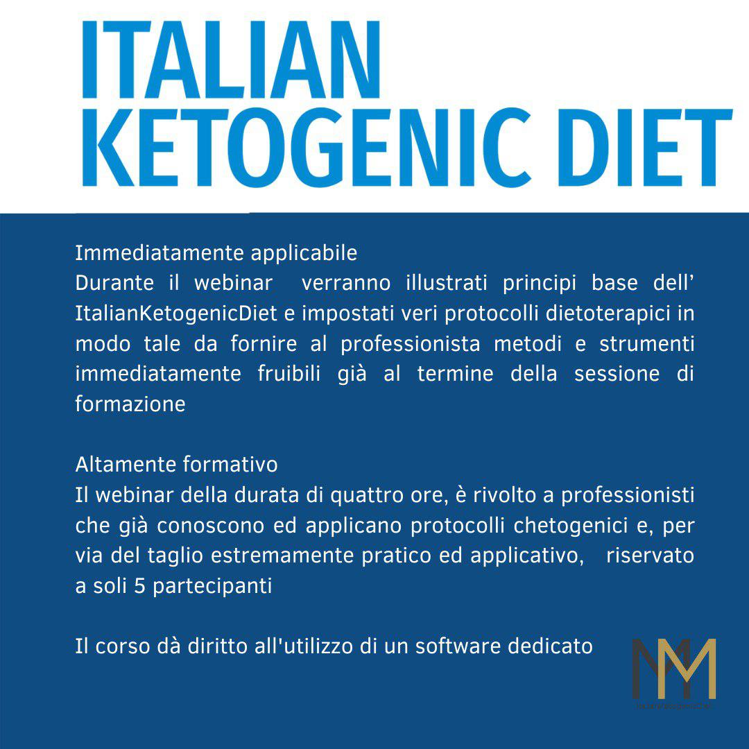 Durante il Webinar verranno illustrati principi di base dell’ItalianKetogenicDiet e impostati veri protocolli dietoterapici in modo tale da fornire al professionista metodi e strumenti immediatamente fruibili già al termine della sessione di formazione.
